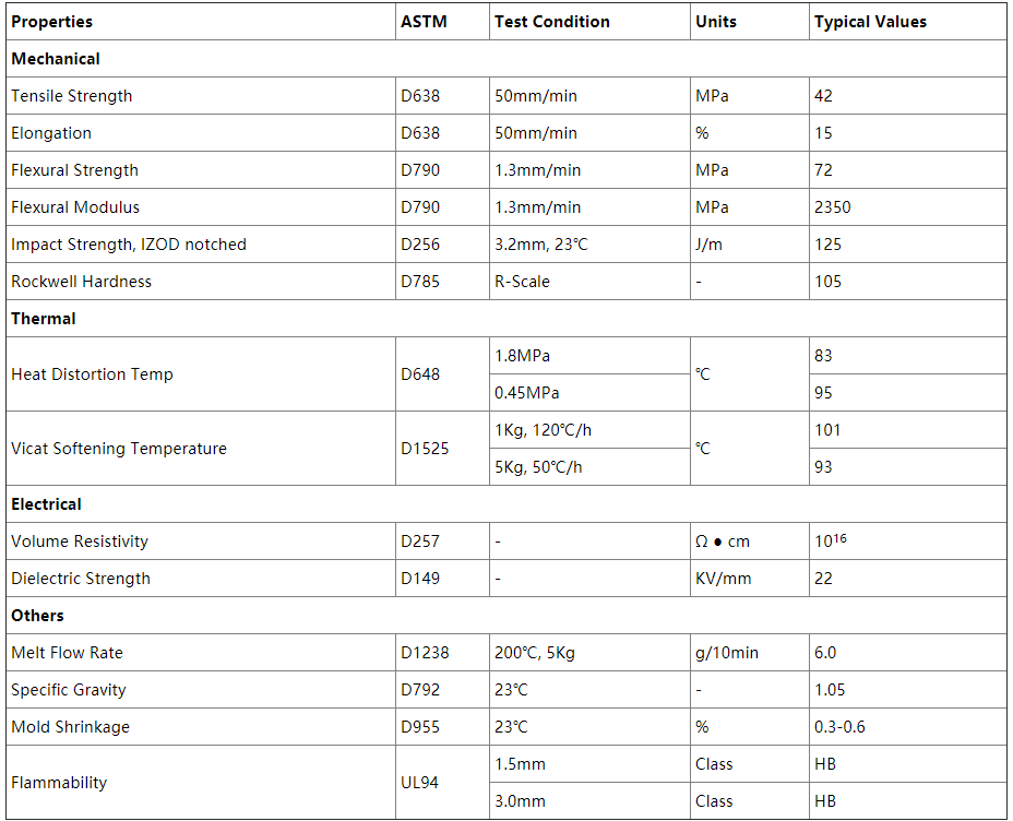 2.優(yōu)良的成型加工性,以及良好的綜合力學(xué)性能。